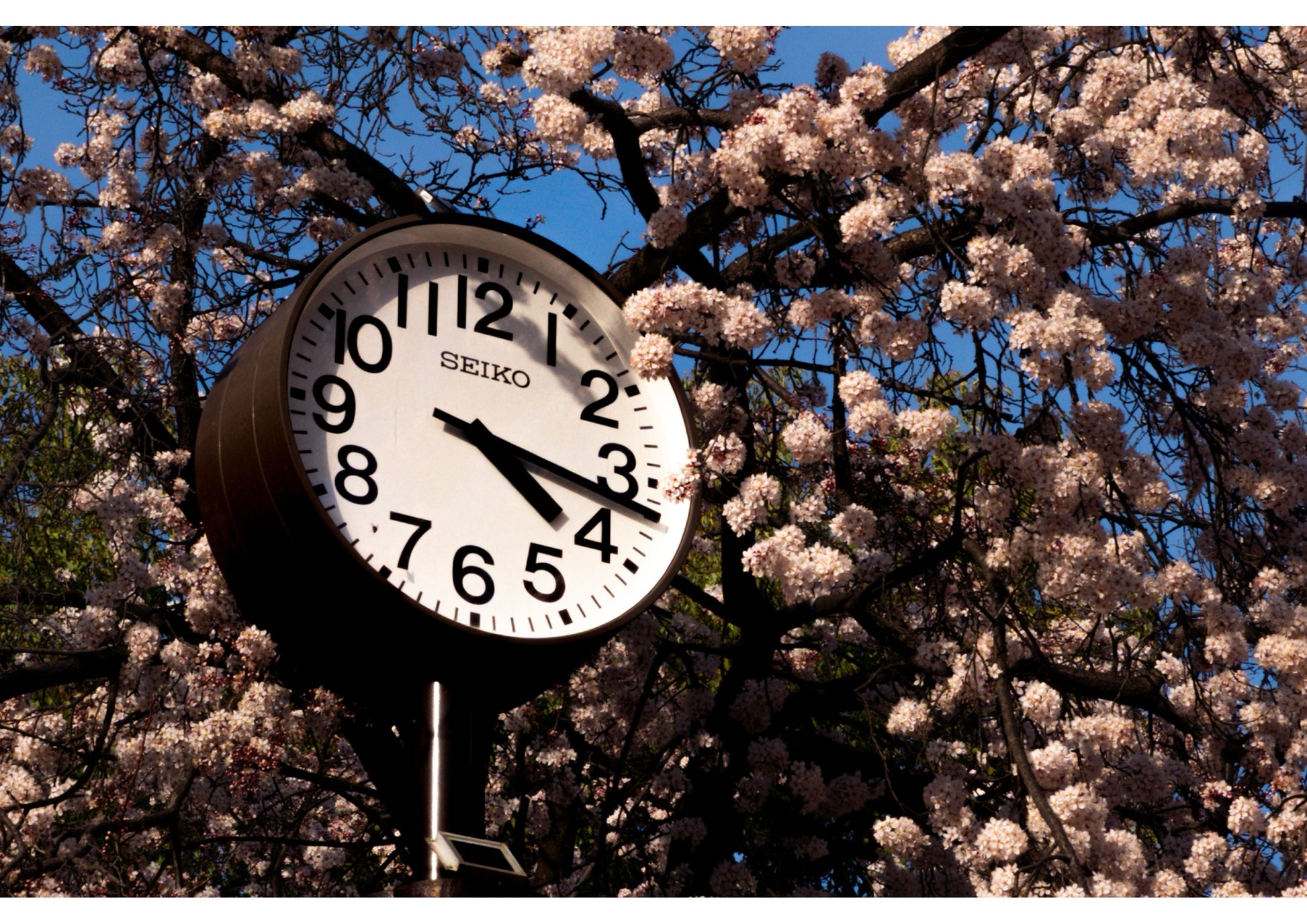 A Moment’s Notice captures the delicate transience of time — cherry blossoms suspended in their briefest bloom around a quiet clock face.